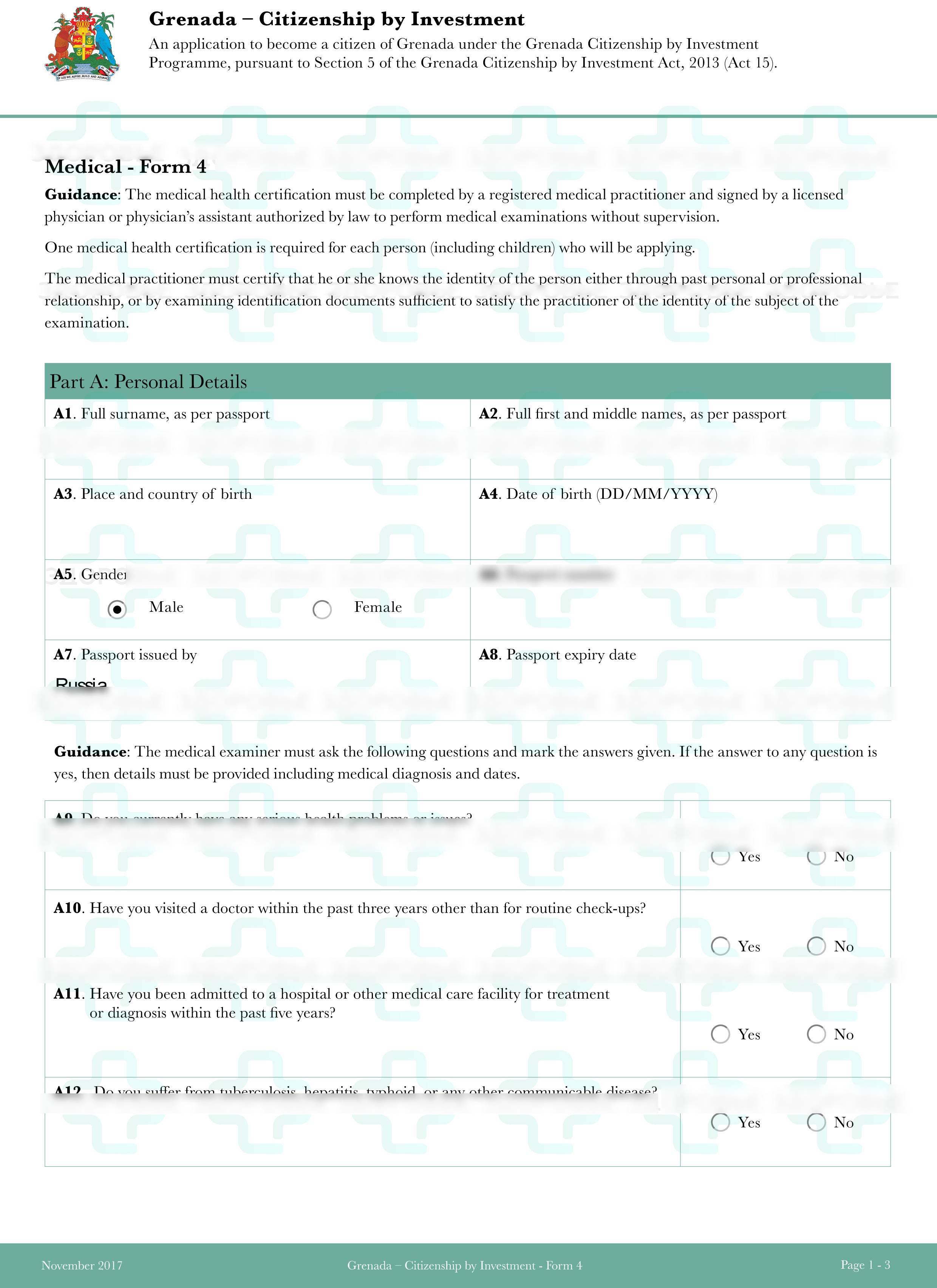 Как происходит процесс оформления Grenada Citizenship by Investment Medical Form 4