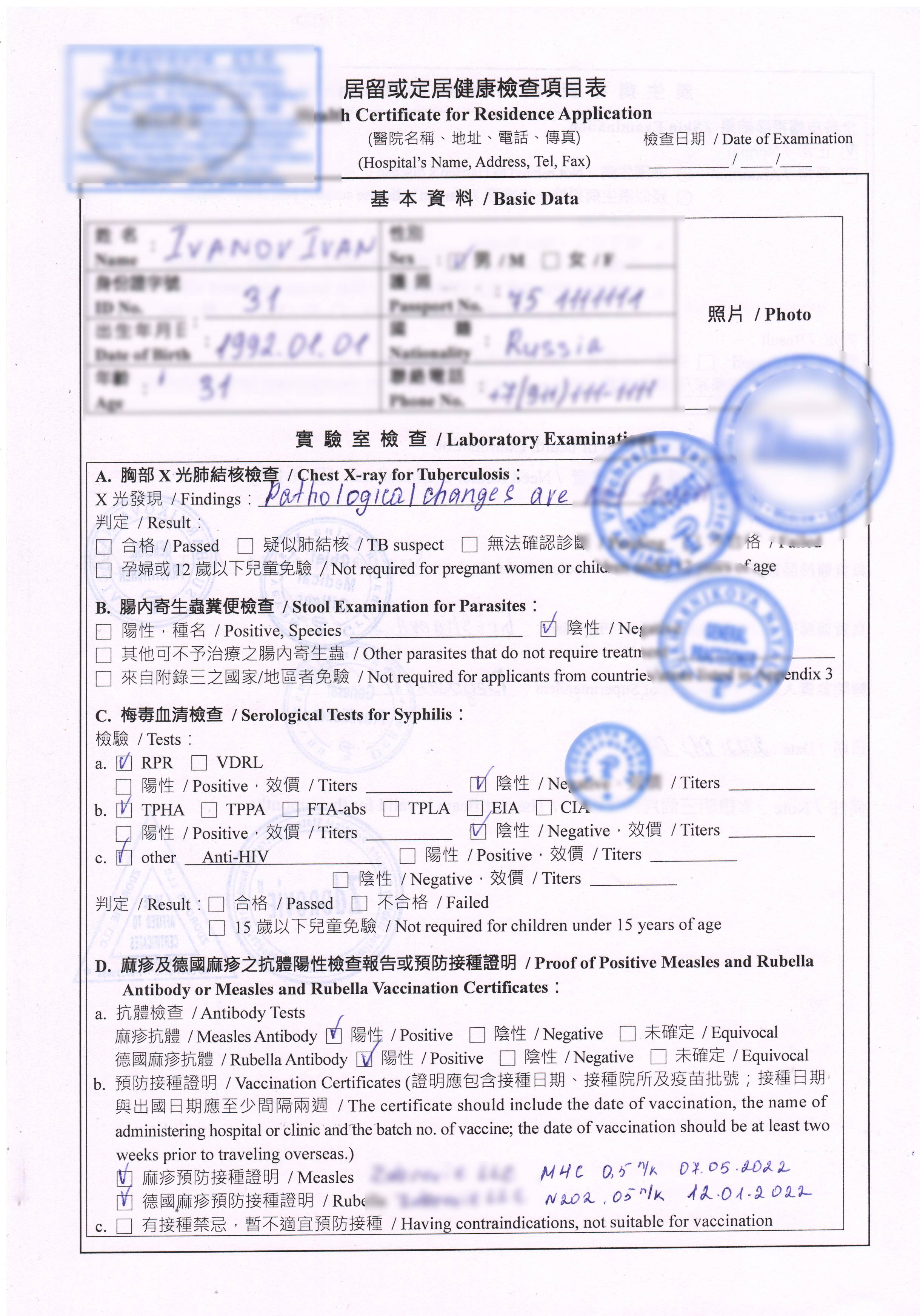Все медосмотры занимают около 30-40 минут. Health Certificate for Taiwan будет готова на третий день.