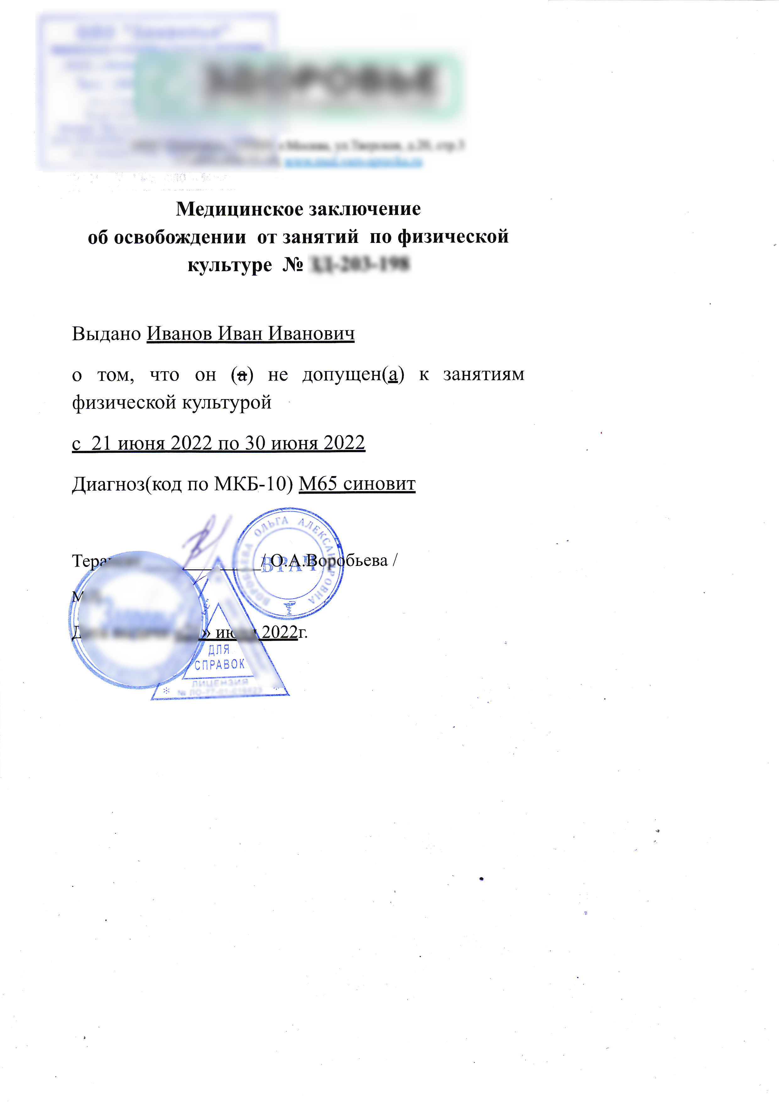 Справка для освобождения от физкультуры: получить в Москве быстро и недорого