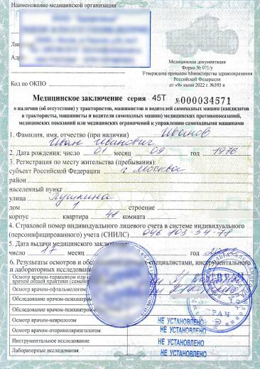 При выявлении патологии, которая препятствует управлению транспортом, водителя направят на лечение. После прохождения терапевтического курса пациент вновь получает допуск к прохождению медосмотра. Когда все специалисты проставляют свои отметки в специальном бланке, терапевт ставит подпись на справке 071/у для тракторов, погрузчиков и самоходных машин для дальнейшего направления в органы Гостехнадзора.