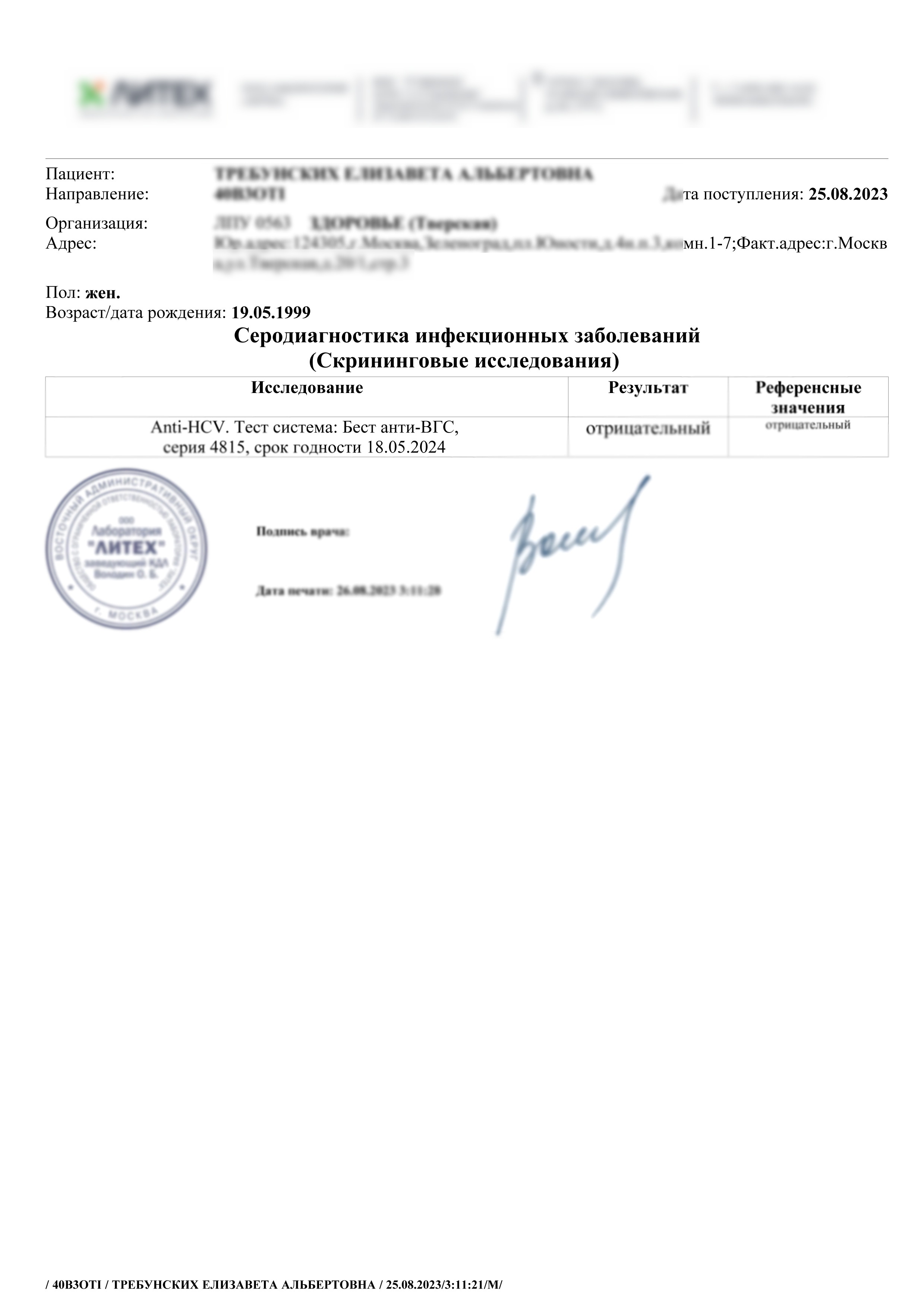 Скрининг на гепатит C (Anti-HCV) для диагностики наличия антител к вирусу.